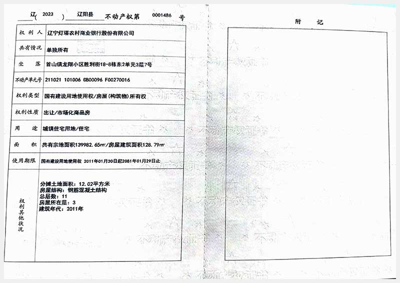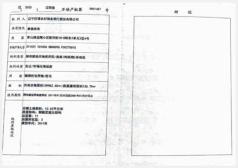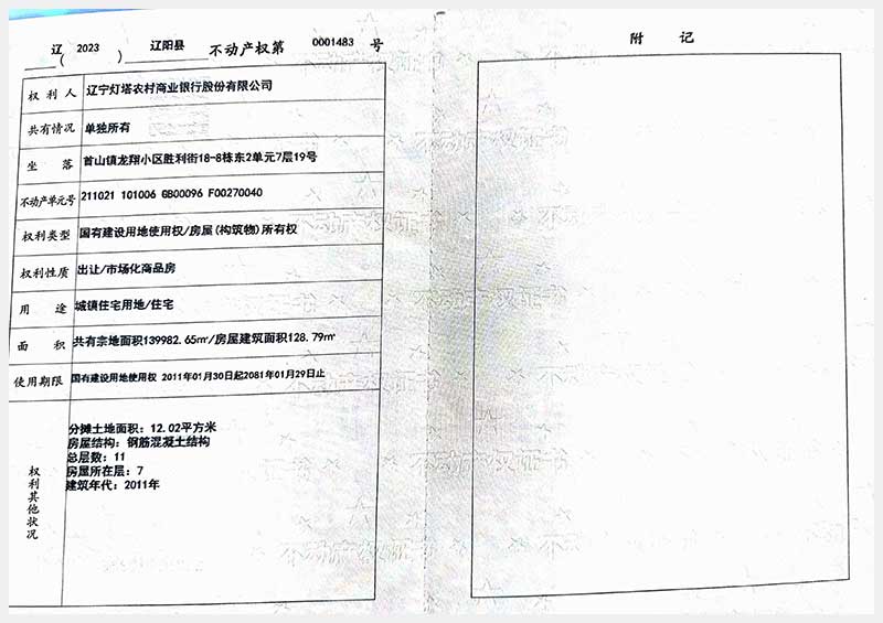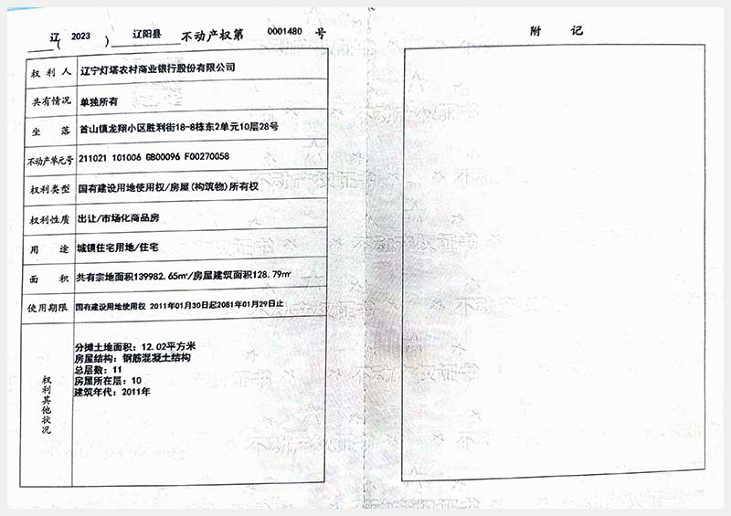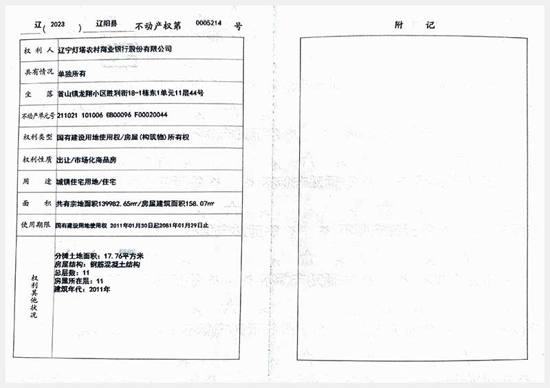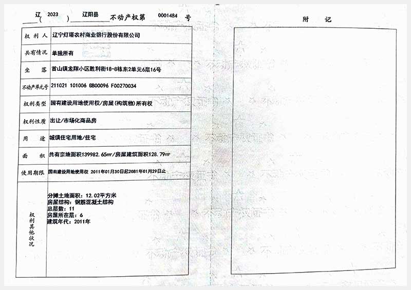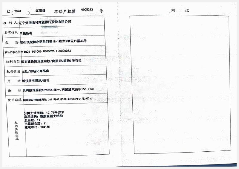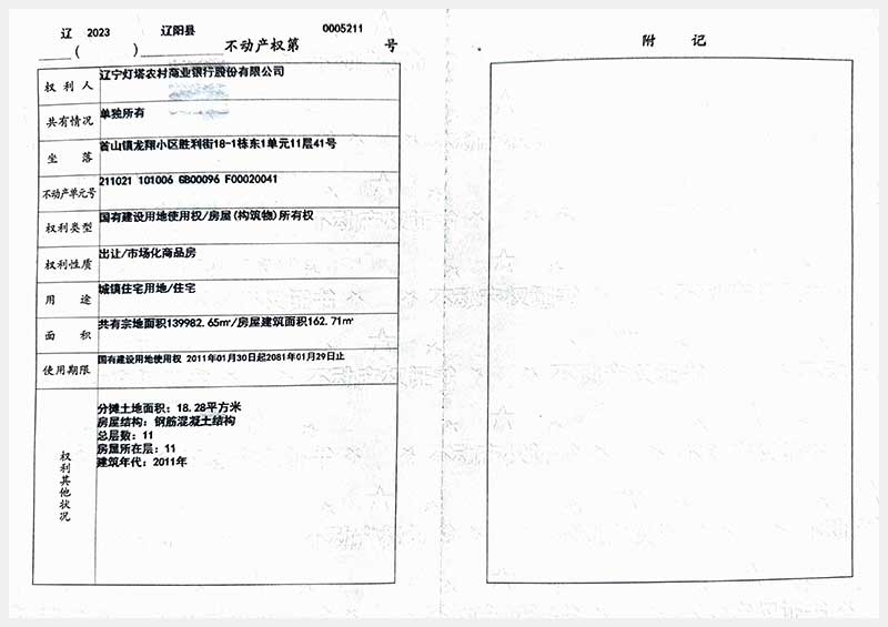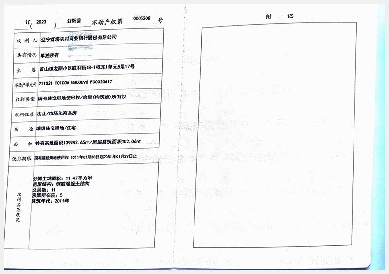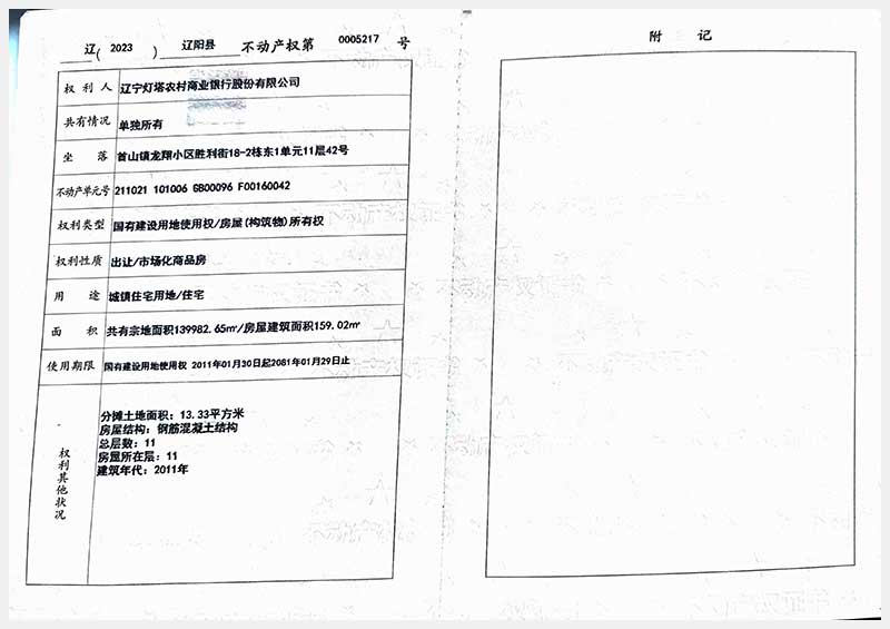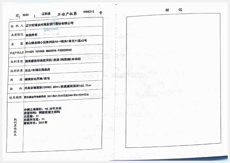 59號(hào) 遼陽市首山鎮(zhèn)龍翔小區(qū)勝利街18棟房產(chǎn)