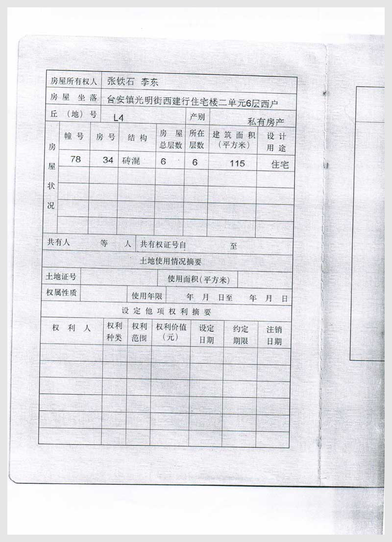28-2號(hào) 臺(tái)安鎮(zhèn)光明街西建行住宅樓二單元6層西戶