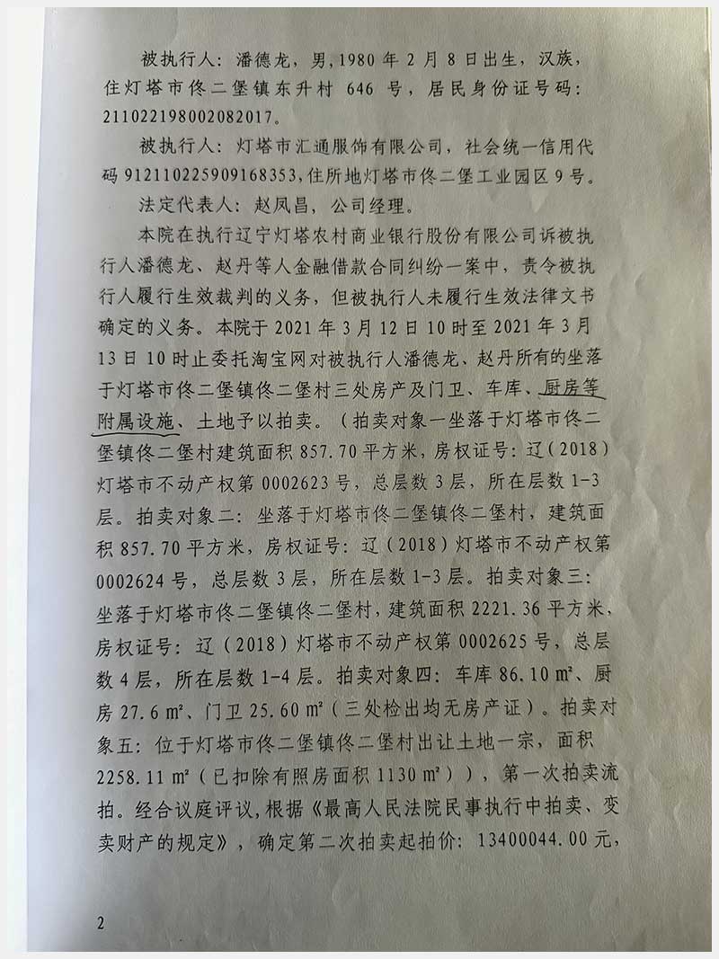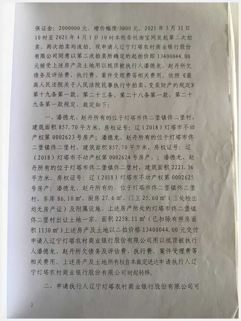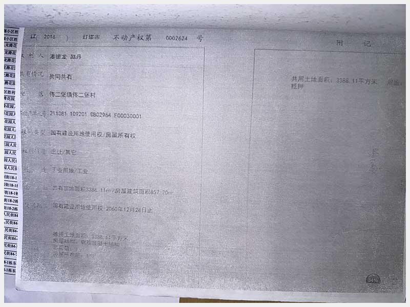 名稱:燈塔市佟二堡鎮(zhèn)佟二堡村房產(chǎn)及土地使用權(quán) 面積:房產(chǎn):有證:3079.06㎡,無證:139.3㎡;土地:3388.11㎡ 瀏覽次數(shù):27
