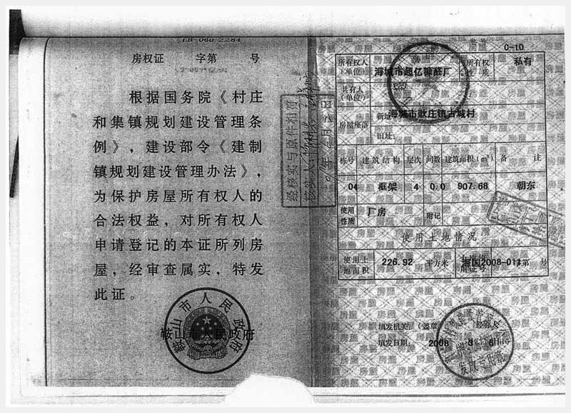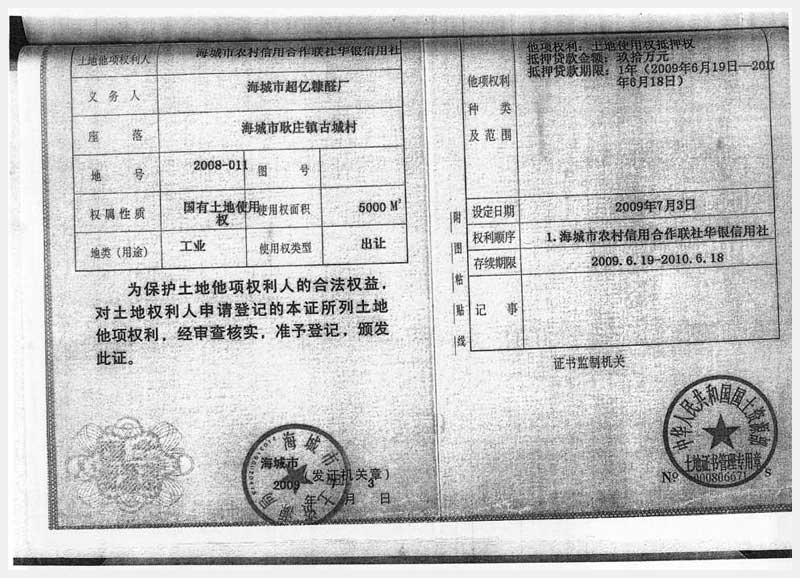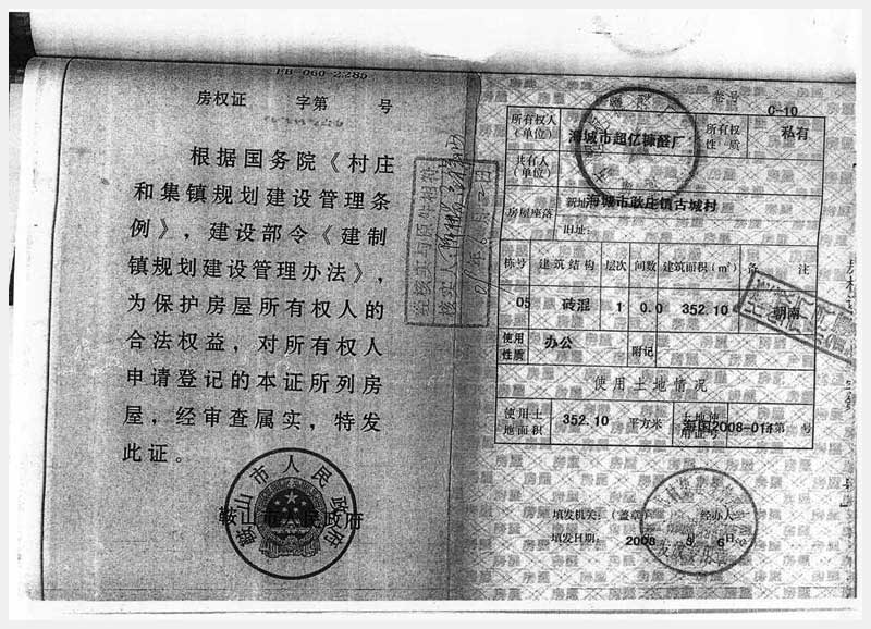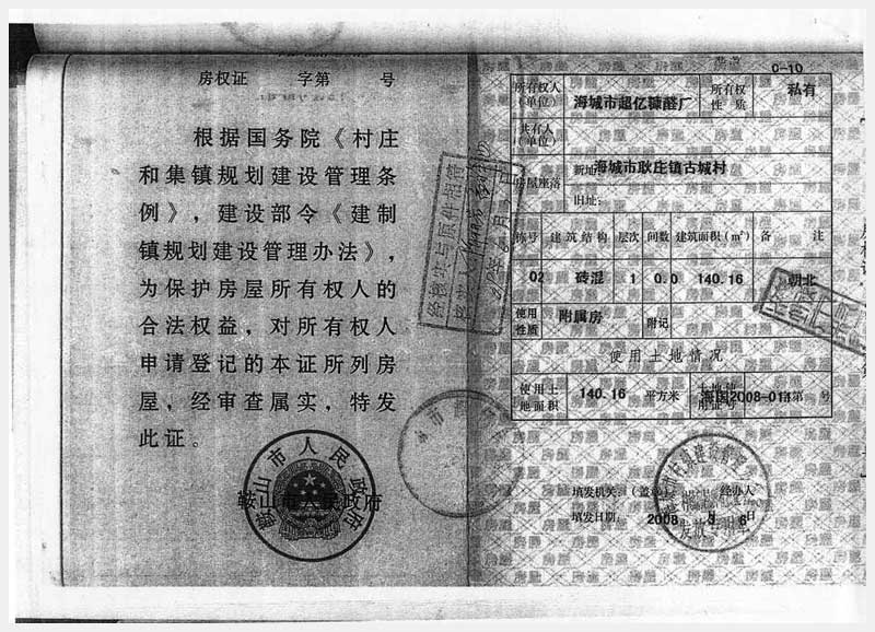 106號(hào) 海城市耿莊鎮(zhèn)古城村的國(guó)有土地使用權(quán)及廠(chǎng)房