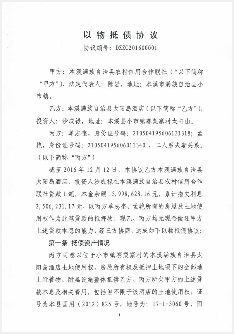 58號 本溪滿族自治縣太陽島酒店房產(chǎn)、土地及附屬設(shè)施