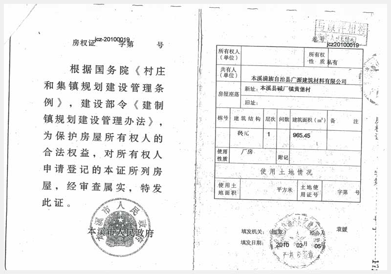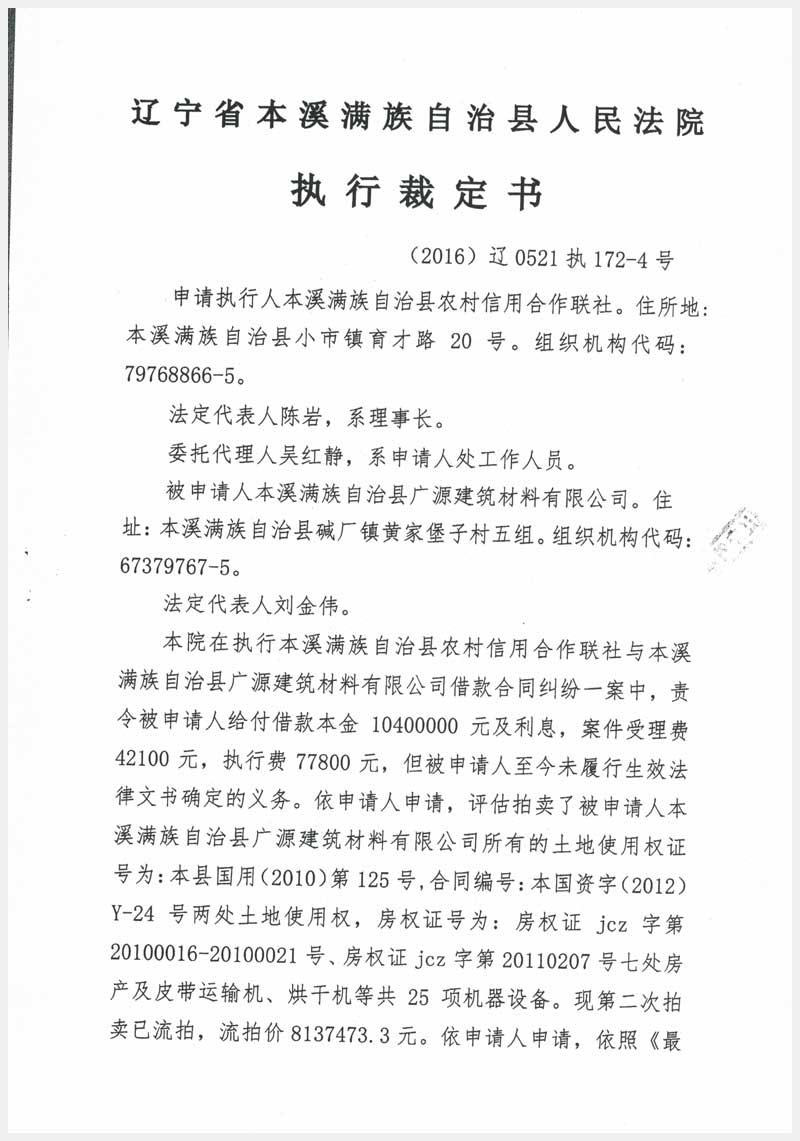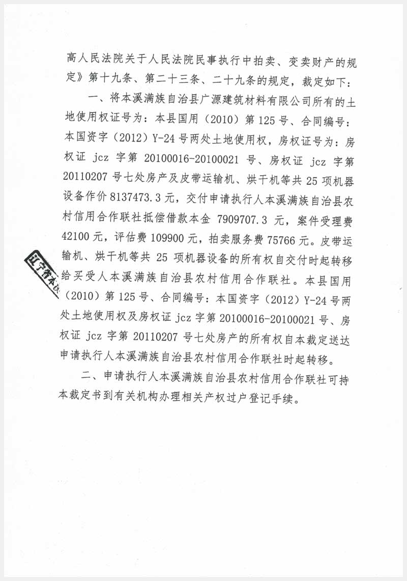 名稱:本溪縣堿廠鎮(zhèn)黃堡村房產(chǎn)7處、土地2處及設(shè)備25項(xiàng) 面積:房產(chǎn):3241.16㎡、土地:9290㎡ 瀏覽次數(shù):1897