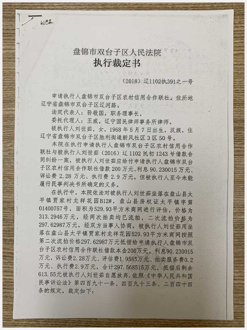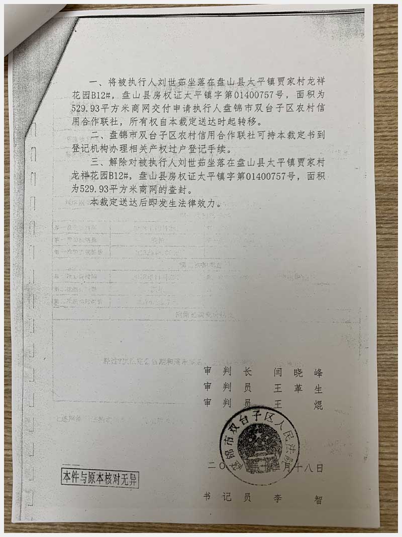 3號 盤錦盤山縣太平鎮(zhèn)賈家村龍祥花園B12#房產(chǎn)(劉世茹)