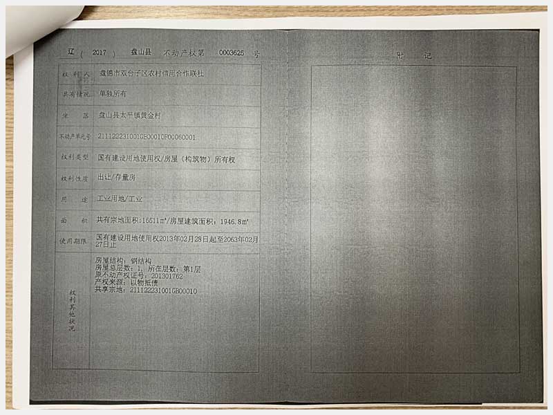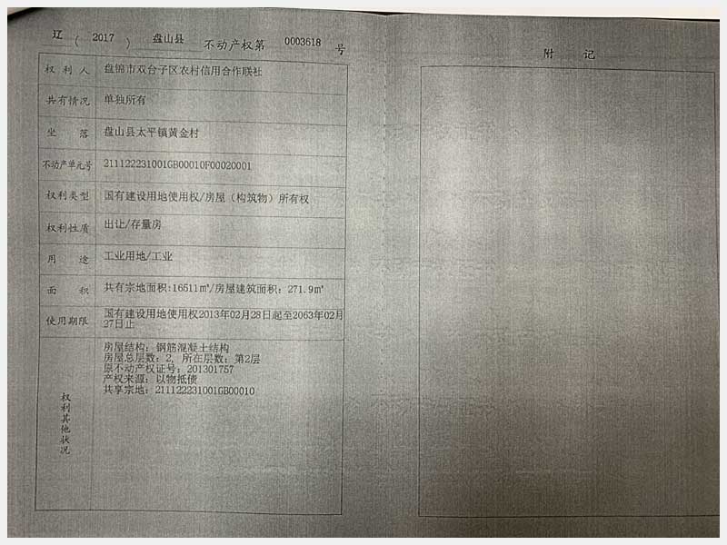 4號(hào) 盤(pán)錦盤(pán)山縣太平鎮(zhèn)黃金村房產(chǎn)及土地使用權(quán)(盤(pán)錦晟新電氣有限公司)