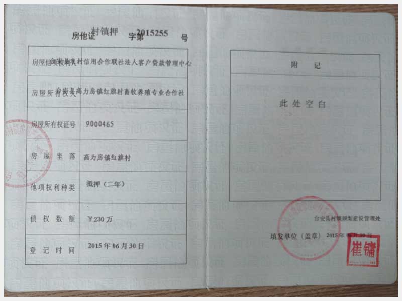 25號(hào) 臺(tái)安縣高力房鎮(zhèn)紅旗村畜牧養(yǎng)殖專業(yè)合作社