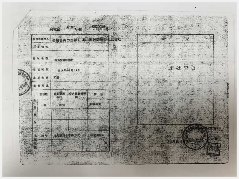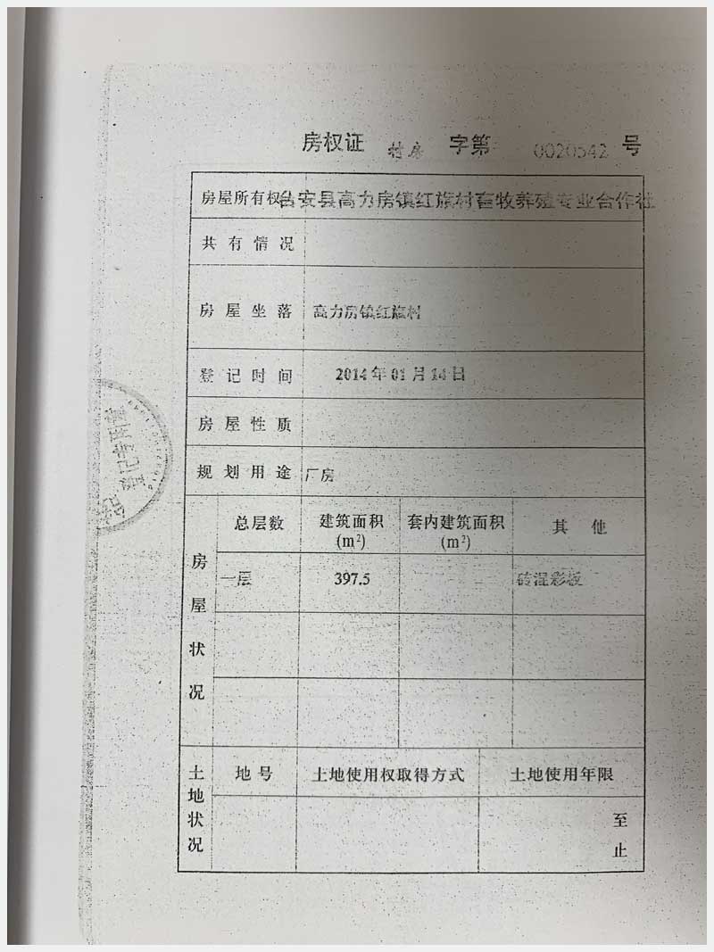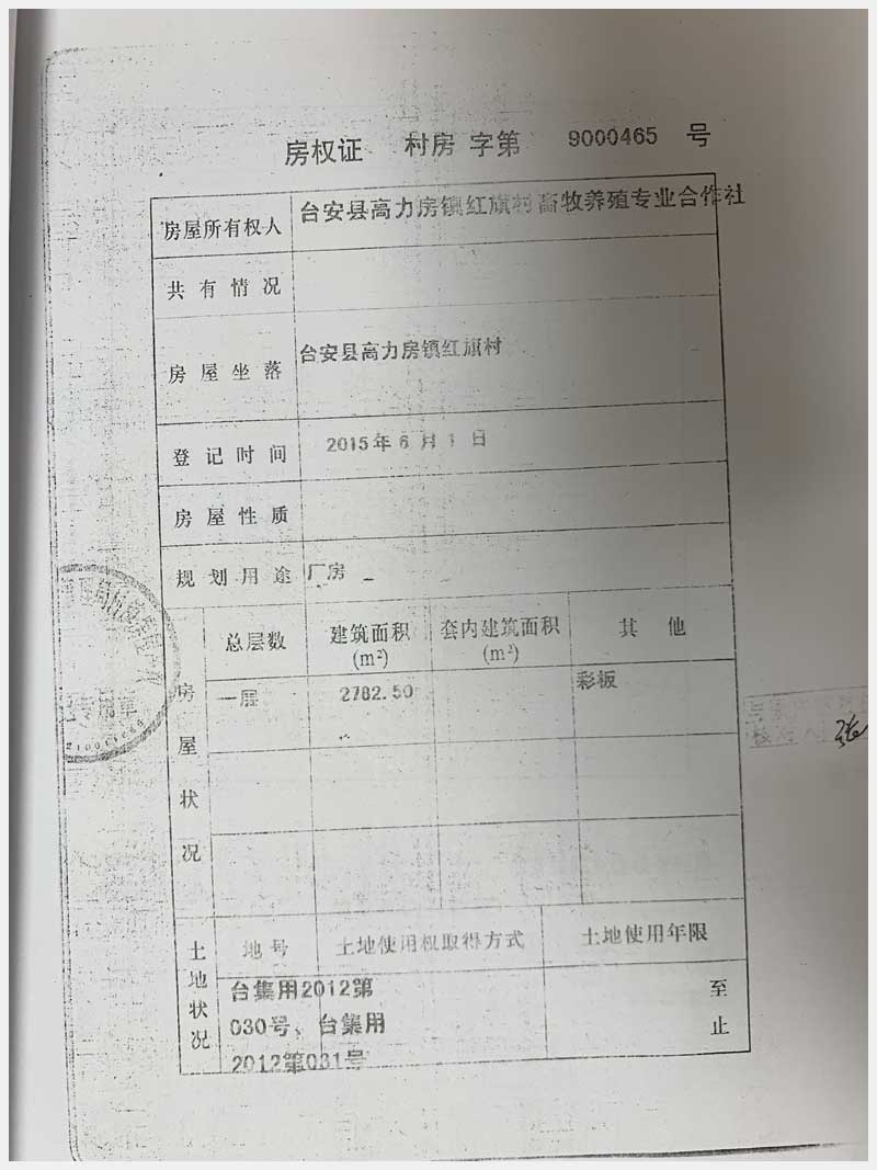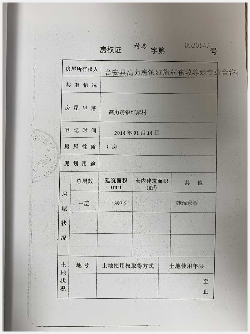 名稱:臺(tái)安縣高力房鎮(zhèn)紅旗村畜牧養(yǎng)殖專業(yè)合作社 面積:房產(chǎn):10559.98㎡、土地:19807.47㎡ 瀏覽次數(shù):1438