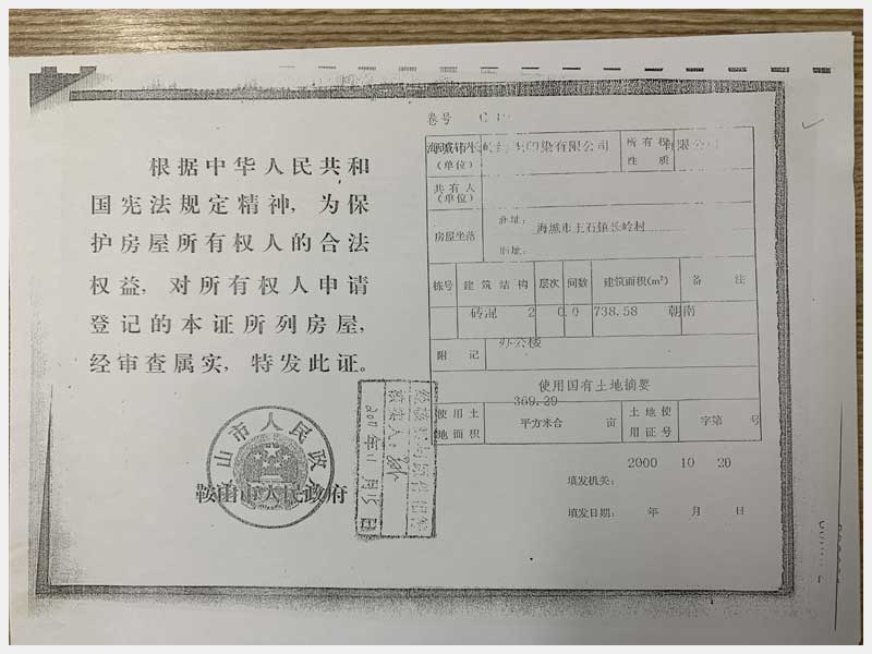 44號 海城市王石鎮(zhèn)長嶺村廠房及土地使用權
