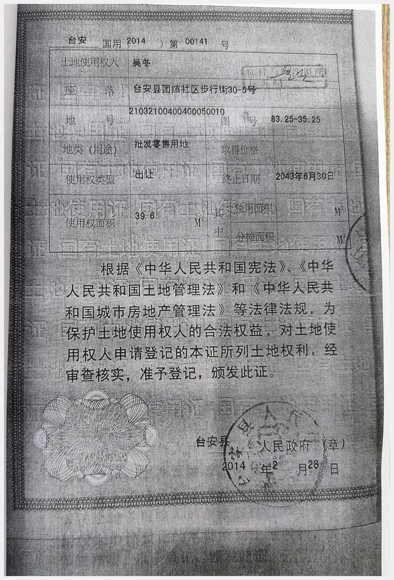 地址:臺安鎮(zhèn)文化路北工會南 標(biāo)的號:69