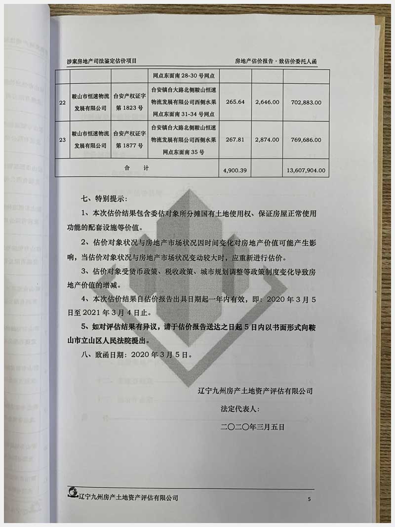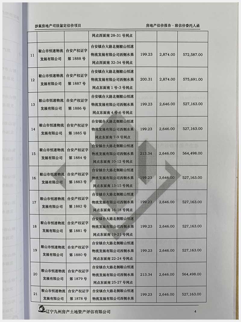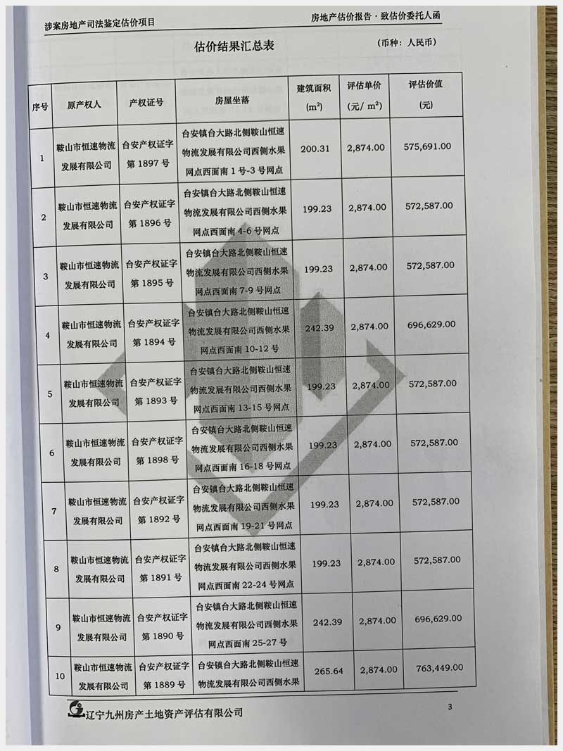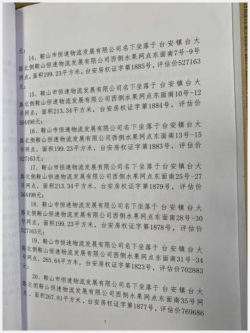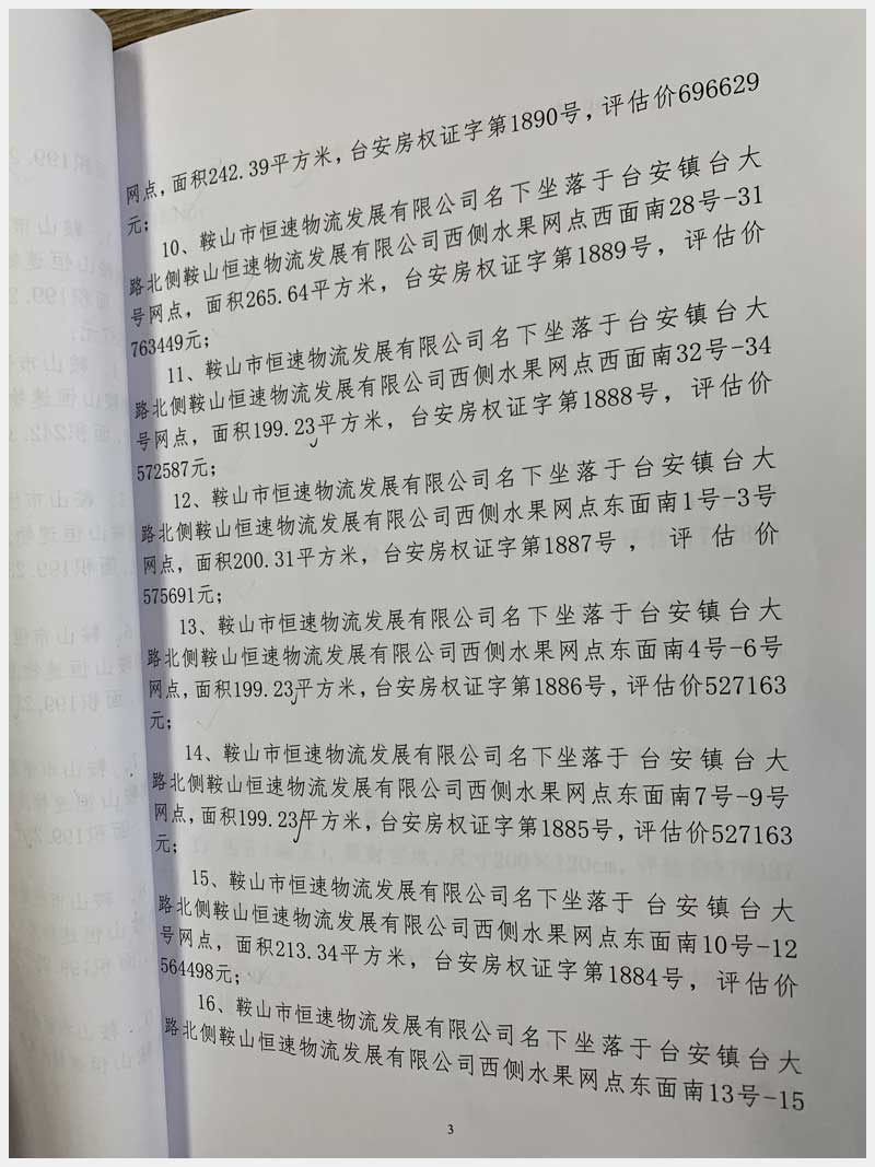 地址:臺安鎮(zhèn)臺大路北側(cè)鞍山恒速物流發(fā)展有限公司 標的號:71