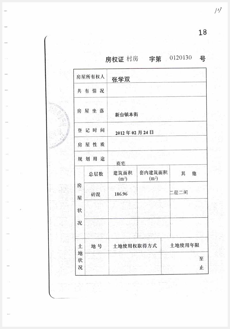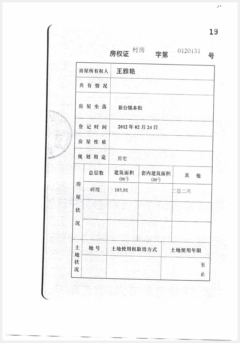 名稱:臺安縣新臺鎮(zhèn)本街2處房產 面積:185.88㎡、186.96㎡ 瀏覽次數(shù):1192