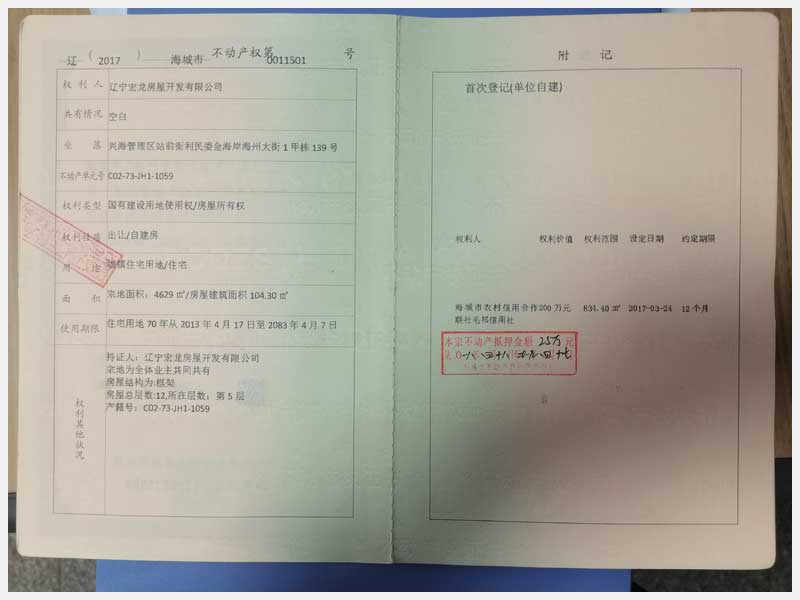 名稱:海城市興海管理區(qū)站前街利民委金海岸海州大街1甲棟5處房產(chǎn) 面積:104.3㎡/戶(5、6、8、10、11樓) 瀏覽次數(shù):1643