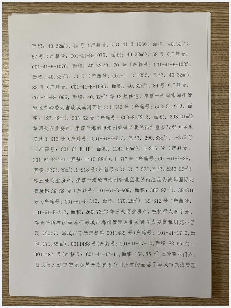144號(hào) 海城市海洲管理區(qū)北關(guān)街合力委弘際公寓衛(wèi)士南路20棟5號(hào)13處房產(chǎn)